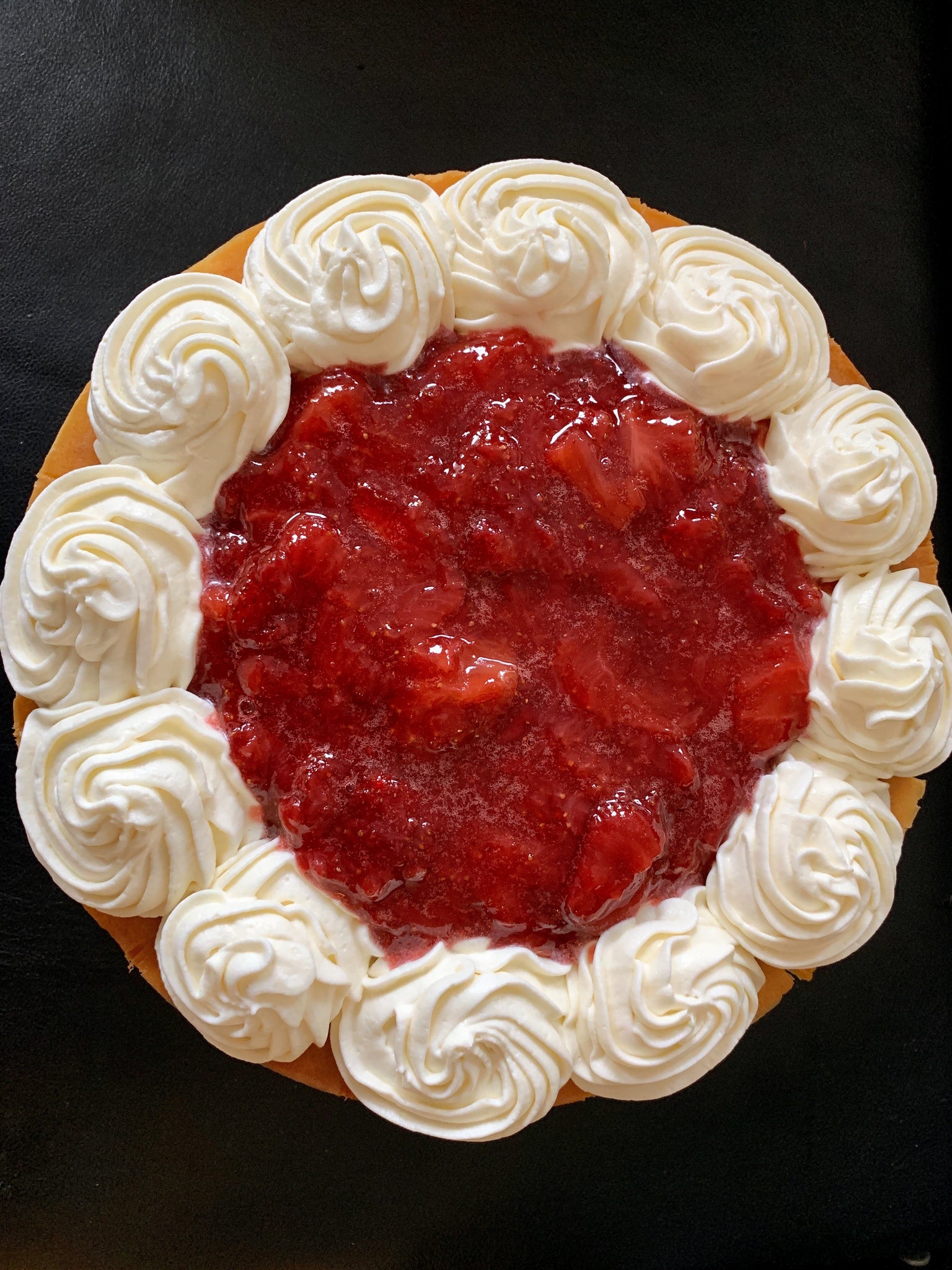 Codetta Classic cheesecake topped with handmade strawberry compote and fresh whipped cream!