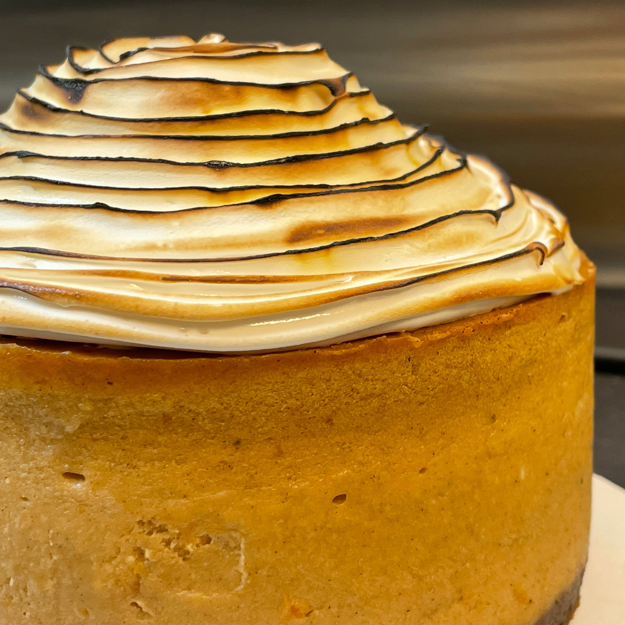 Roasted sweet potato cheesecake topped with torched marshmallow fluff (halal/kosher)!